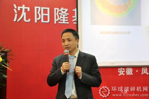 東北大學(xué)礦物工程研究所韓躍新教授做了關(guān)于選礦與資源利用的演講;公司副總經(jīng)理、專利技術(shù)發(fā)明人李朝朋先生介紹了隆基公司產(chǎn)品的技術(shù)先進(jìn)性與良好的服務(wù)理念,并對隆基出品的第三代立環(huán)磁選機(jī)省水、省電、高效、易維護(hù)的特性進(jìn)行了詳細(xì)原理演示、介紹。