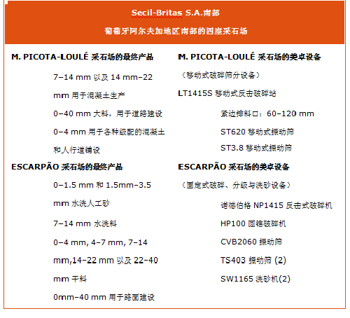 Secil-Britas公司在2008年購買了第一臺移動式設(shè)備——配備有篩分模塊的LT1415S自行移動式反擊破碎站;2009年和2010年又分別購入了一臺ST620和一臺ST3.8移動式篩分站。