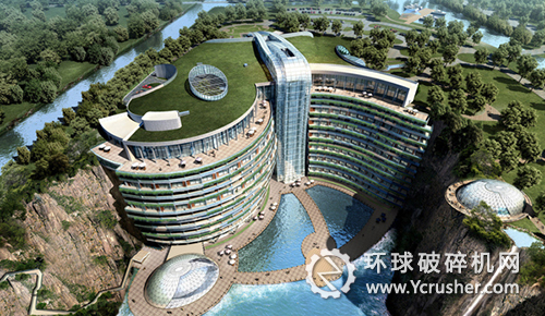 深坑酒店地上三層、地下17層、水下一層,并設(shè)有蹦極等娛樂項(xiàng)目。整個投資在6億元左右,天然室內(nèi)花園+大型景觀瀑布+上有景觀總統(tǒng)房+下有水中情景房。站在松江區(qū)橫山附近的天馬山上,俯視百米深的大坑,只見坑壁四周巖石陡峭,坑里平靜的潭水不時(shí)被微風(fēng)“吹皺”,偶有兩只小鳥掠水凌空,漸行漸遠(yuǎn)……這個昔日被垃圾腐蝕的大坑如今露出的“清秀”模樣讓人驚喜不已。一個海拔負(fù)65米的五星級酒店將在這個大坑內(nèi)起建,并有望成為世界上人工坑內(nèi)海拔最低的酒店。