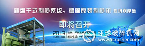 為向中國(guó)用戶推廣較好的制砂機(jī)設(shè)備,讓國(guó)內(nèi)用戶真正享受到德國(guó)公司原裝制砂機(jī)所帶來(lái)的益處,由鄭州鼎盛工程技術(shù)有限公司主辦的新型干式制砂系統(tǒng)、德國(guó)原裝制砂機(jī)現(xiàn)場(chǎng)觀摩會(huì)將于2013年11月15-16日在河南鄭州召開。