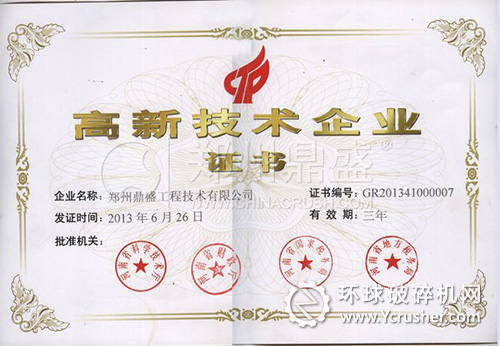 經(jīng)河南省高新技術(shù)企業(yè)認定管理工作領(lǐng)導(dǎo)小組組織專家評審,老牌破碎機廠家鄭州鼎盛工程技術(shù)有限公司通過評審,榮獲“高新技術(shù)企業(yè)”稱號,該稱號對于企業(yè)科技轉(zhuǎn)型、企業(yè)品牌形象的提升、企業(yè)市場和資本價值的提高都有著重要的作用,鄭州鼎盛品牌形象也獲得進一步提升。