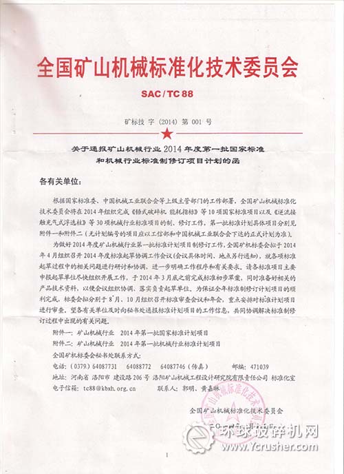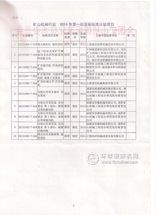 關(guān)于通報(bào)礦山機(jī)械行業(yè)2014年度第一批國(guó)家標(biāo)準(zhǔn)和機(jī)械行業(yè)標(biāo)準(zhǔn)制修訂項(xiàng)目計(jì)劃的函
