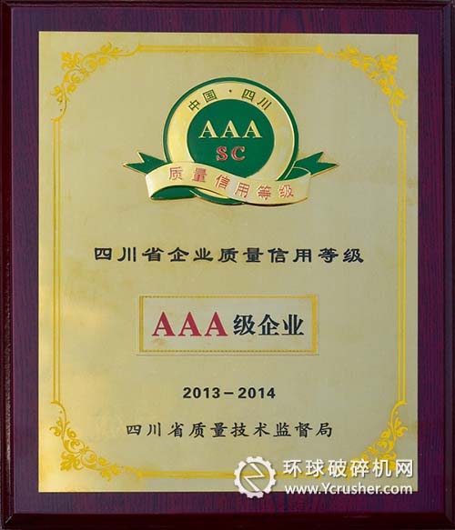 川礦集團(tuán)公司日前,從省質(zhì)檢局獲悉,四川礦山機(jī)器(集團(tuán))有限責(zé)任公司喜獲“四川省企業(yè)質(zhì)量信用等級(jí)AAA級(jí)企業(yè)”稱號(hào),并頒發(fā)了榮譽(yù)證書。