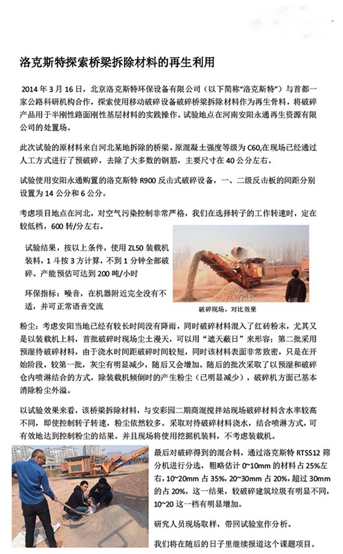 洛克斯特與公路科研機(jī)構(gòu)合作探索用移動(dòng)破碎設(shè)備破碎橋梁拆除材料的再生利用