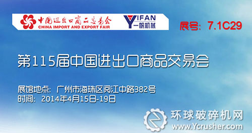 繼2013年秋季廣交會(huì)歸來(lái),一帆機(jī)械從中汲取了大量的信息,并意識(shí)到打造企業(yè)品牌和產(chǎn)品創(chuàng)新的重要性。公司致力于破碎設(shè)備的創(chuàng)新研發(fā)、以及對(duì)建筑垃圾處理提出的完美解決方案,都為一帆在未來(lái)的發(fā)展中匯聚了強(qiáng)大的力量。于是在2014年,鄭州一帆再次踏上廣交會(huì)的征程,一路向南,在大型機(jī)械及設(shè)備展區(qū)開始了第115屆中國(guó)進(jìn)出口商品交易會(huì)之行。