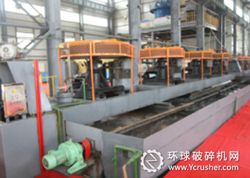 招金接手后,在2008年至2014年的5年時(shí)間內(nèi),金屬銅資源儲(chǔ)量增至15萬(wàn)噸。選廠共有3個(gè)選礦系列,選礦合計(jì)能力達(dá)到4000t/d,其中一車間磨礦是φ3600×4500球磨機(jī),處理能力達(dá)到3100t/d,二三車間磨礦均是φ2100×3000球磨機(jī),處理能力分別為450t/d,目前選礦物電成本為20元/噸,綜合成本42元/噸,選礦電耗15.8度/噸,選礦回收率是96.5%。一車間破碎為兩段一閉路流程,磨礦分級(jí)為帶預(yù)先篩分的一段閉路磨礦,浮選流程是一粗一精三掃,精礦經(jīng)濃密機(jī)濃縮后由陶瓷過(guò)濾機(jī)過(guò)濾。