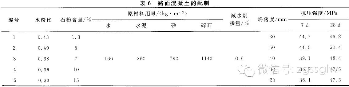 從表6可以看出,在石粉含量為5%、水粉比為0.40,混凝土的坍落度和抗壓強(qiáng)度最佳。