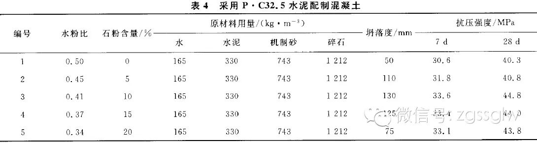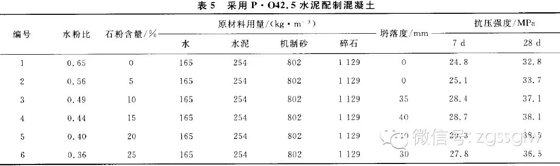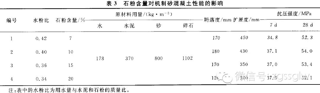 從以上石粉含量對(duì)中低強(qiáng)度等級(jí)機(jī)制砂混凝土工作性能和抗壓強(qiáng)度的影響可以得出:無論是流態(tài)混凝土還是塑性混凝土,即使其水泥等級(jí)、水灰比不同。混凝土要獲得最佳工作性和抗壓強(qiáng)度,混凝土的水粉比均為0.40。