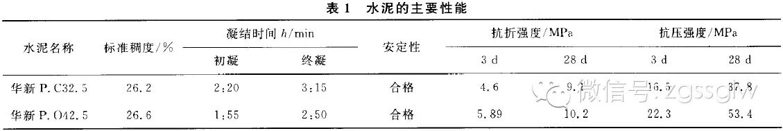 試驗(yàn)中采用華新P.C32.5和P.O42.5等水泥,水泥的各項(xiàng)性能指標(biāo)均符合GB 175一1999標(biāo)準(zhǔn),其主要性能指標(biāo)見表1;粗集料采用湖北陽新5~25 mm和5~31.5 mm連續(xù)級(jí)配碎石;機(jī)制砂為福剛石灰?guī)r機(jī)制砂,其相關(guān)性能指標(biāo)見表2,其級(jí)配曲線見圖1。外加劑為武鋼浩源FDN-1高效減水劑。