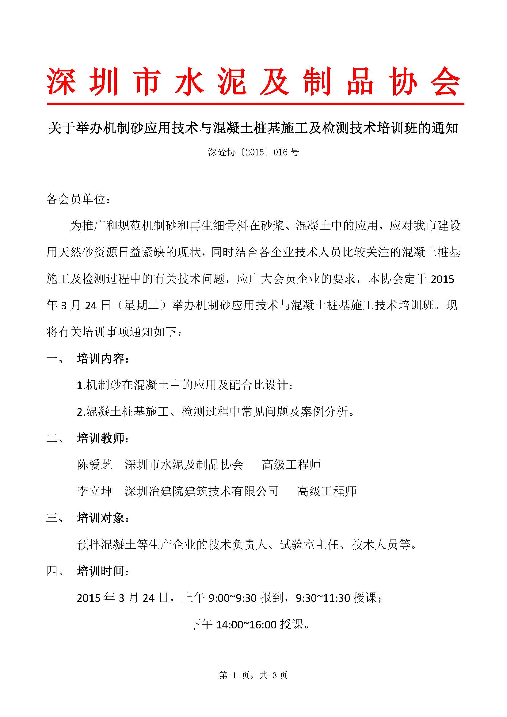 深圳協(xié)會(huì)定于2015年3月24日舉辦機(jī)制砂應(yīng)用與混凝土樁基施工及檢測(cè)技術(shù)培訓(xùn)班,具體通知及報(bào)名回執(zhí)表可在協(xié)會(huì)QQ群及網(wǎng)盤(pán)共享下載。