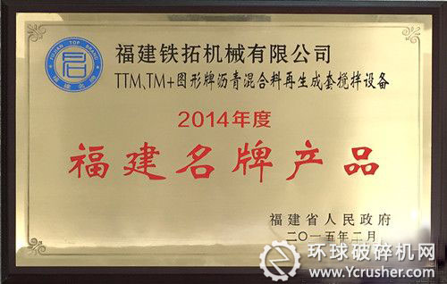 鐵拓機械瀝青再生設(shè)備榮獲“福建名牌產(chǎn)品”