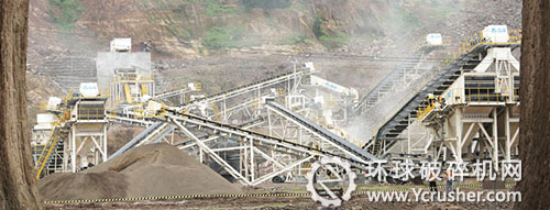 沖擊式破碎機(jī)在內(nèi)的所有機(jī)械設(shè)備統(tǒng)統(tǒng)在正常和高效地運行;縱橫交錯、長度不一的皮帶運輸機(jī)上,各種規(guī)格的砂石骨料“有序流動”……蔚藍(lán)色的天空下,整個廠區(qū)一片繁忙景象。