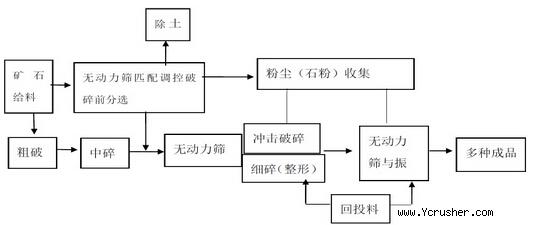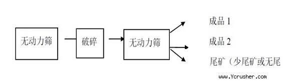 圖2 無動力防卡篩配套應用于較大粒徑或粒徑級差大粉料多的選礦工藝流程圖