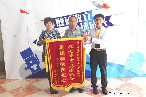 礦山工程機(jī)械有限公司贈(zèng)送“敬老愛老 為老服務(wù) 美德?lián)P徹聚愛心”的錦旗,感謝西芝近年來對(duì)敬老院公益事業(yè)的大力支持和幫助。西芝負(fù)責(zé)人張曉龍經(jīng)理、黨總支部書記張?zhí)觳爬蠋煷砑瘓F(tuán)接受了錦旗。