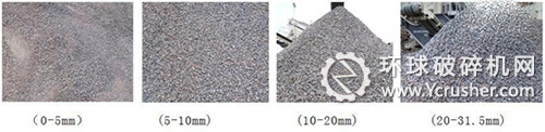 皮帶機輸送進694+進行精細分級,篩分出0-5mm,5-10mm,10-20mm和20-31.5mm四種建筑骨料。