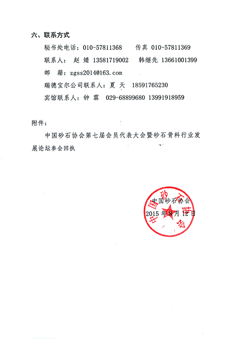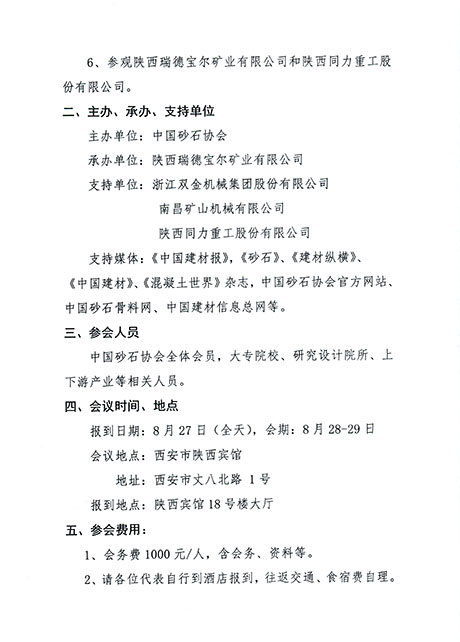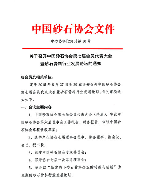 關(guān)于召開(kāi)中國(guó)砂石協(xié)會(huì)第七屆會(huì)員代表大會(huì)暨砂石骨料行業(yè)發(fā)展論壇的通知: