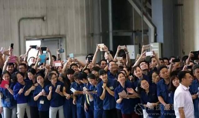 而后短短的十幾米路程,總理不停地停下腳步。工人們大喊,“總理與我們合個影吧!”“好!”總理笑著轉(zhuǎn)過身,站到了與工人們中間。