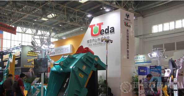 破碎機:UEDA——裝在挖機上的破碎機和篩分機。產(chǎn)品一經(jīng)展出,就受到了觀眾的關注,是什么樣的產(chǎn)品,這樣獲得客商的矚目呢?那就讓我們了解下,山東銘德營銷總監(jiān)李林超先生介紹說:UEDA,形狀似挖機鏟斗,破碎方式是鄂破,換掉挖機原來的斗就能讓挖機變成鄂式移動破碎機。適用于做土石方,路橋,隧道,建筑拆遷等工程項目,是用戶賺錢的利器。
