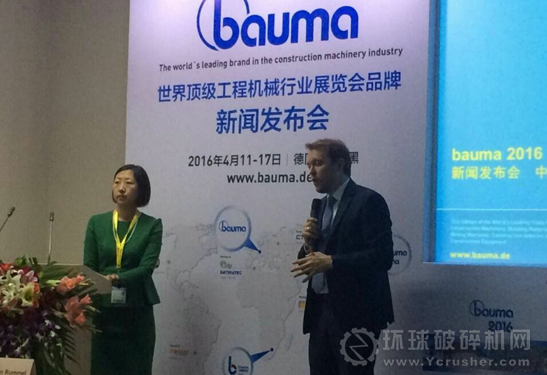 2015年9月23日,也就是第十三屆中國(北京)國際工程機(jī)械、建材機(jī)械及礦山機(jī)械展覽與技術(shù)交流會 (簡稱:BICES 2015)開啟的第二天,在北京新國展W101會議室舉行了bauma 2016世界頂級工程機(jī)械行業(yè)展覽會品牌發(fā)布會,并宣布下屆bauma將于2016年4月11-17日在慕尼黑會展中心舉辦。本次發(fā)布會由慕尼黑博覽集團(tuán)公關(guān)經(jīng)理薩賓娜·瓦格納女士主持。慕尼黑博覽集團(tuán)董事總經(jīng)理史蒂芬·路蒙爾先生、中國工程機(jī)械工業(yè)協(xié)會副會長兼秘書長蘇子孟先生出席了本次展會,并針對bauma 2016做相應(yīng)主題演講.