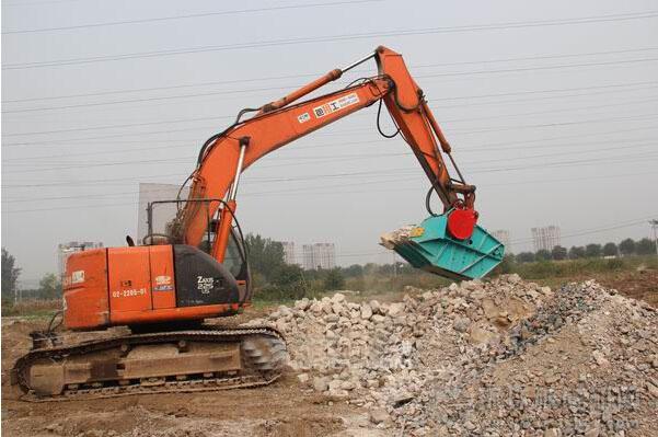 UU-200鄂式移動破碎斗在工地現場可直接回收再利用混凝土廢料。能破碎瀝青,煤炭,磚瓦塊,混凝土塊,水泥桿,枕木,石灰石,河卵石,花崗巖,玻璃,陶瓷等,從軟巖到極硬巖均可破碎。出料20mm到140mm可調,產量20噸/小時到120噸/小時不等。