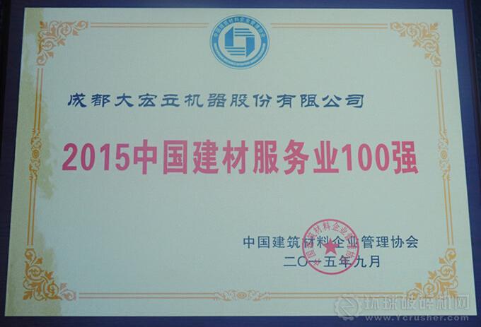 大宏立憑借優(yōu)質(zhì)的產(chǎn)品、高品質(zhì)的客戶服務(wù)及綠色環(huán)保的戰(zhàn)略思路榮獲“2015中國建材服務(wù)業(yè)100強(qiáng)”。
