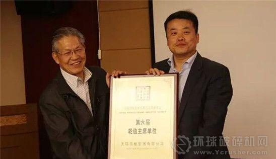 中國(guó)工程機(jī)械工業(yè)協(xié)會(huì)筑路機(jī)械分會(huì)名譽(yù)會(huì)長(zhǎng)姬光才向本次輪值主席單位無(wú)錫雪桃集團(tuán)有限公司授牌