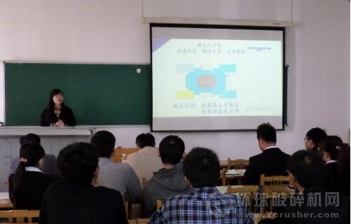 礦山、電力、環(huán)保等行業(yè),國(guó)內(nèi)市場(chǎng)占有率達(dá)70%以上,并擁有自主進(jìn)出口權(quán),產(chǎn)品出口至巴西、俄羅斯、印度、巴基斯坦等30多個(gè)國(guó)家。隨后,招聘負(fù)責(zé)人通過(guò)PPT詳細(xì)講解公司企業(yè)理念、企業(yè)文化、經(jīng)營(yíng)業(yè)績(jī)、薪酬福利及就業(yè)環(huán)境等相關(guān)信息。最后,畢業(yè)生踴躍提出相關(guān)問(wèn)題,招聘負(fù)責(zé)人予以明確回答并提出實(shí)用性建議。