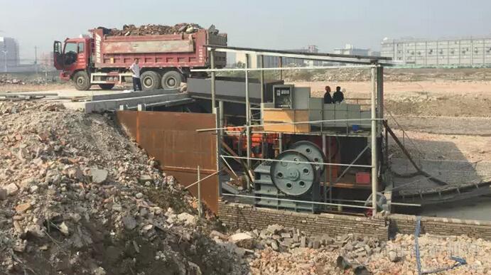 現(xiàn)場(chǎng)可以看到:工程車(chē)滿(mǎn)載建筑垃圾,將其傾倒進(jìn)喂料機(jī)內(nèi),經(jīng)過(guò)