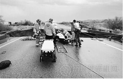 美國(guó)公路上落入坑中的汽車-人民網(wǎng)