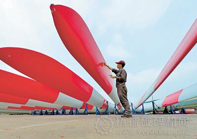 在中船重工第725研究所洛陽雙瑞風(fēng)電葉片有限公司,一批新型復(fù)合材料風(fēng)力發(fā)電葉片準(zhǔn)備發(fā)運(yùn)。潘 郁攝