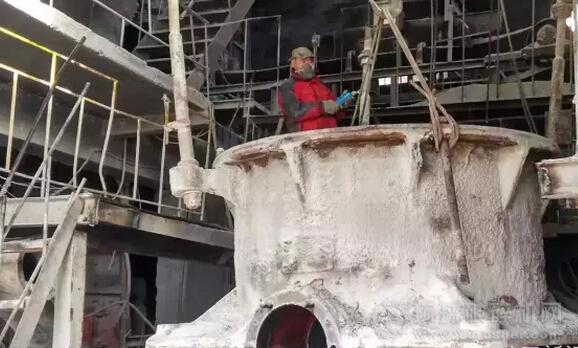 圓錐式破碎機退役了。(圖為礦業(yè)公司鉗工正在吊出圓錐