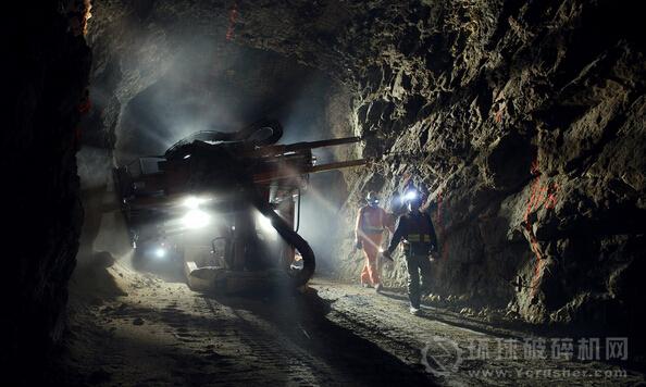 ▼ 礦工將金礦石從地下的礦脈中提取出來。礦位于地下400米。