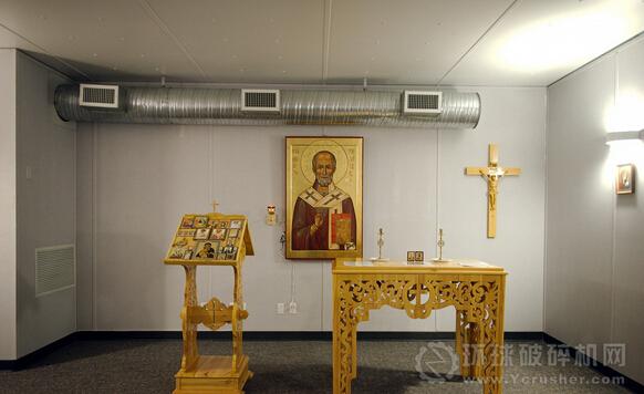 ▼ 礦區(qū)有許多設(shè)施能夠幫助工人們擁有一種家的感覺,包括這個懸掛有俄羅斯東正教肖像畫的教堂。