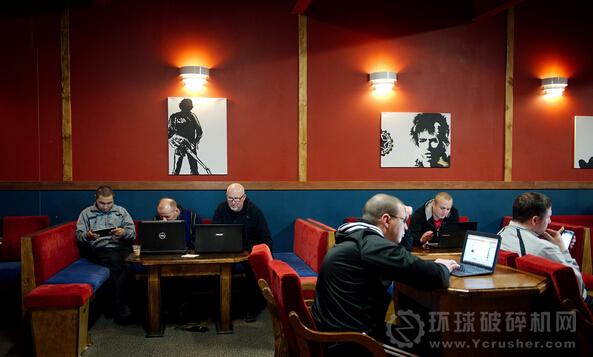 ▼ 人們在“夏至”咖啡館使用他們的筆記本電腦。