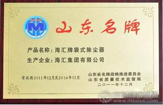 海匯牌袋式除塵器、帶式輸送機(jī)被擬定山東名牌產(chǎn)品