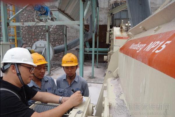 美卓服務工程師與骨料生產(chǎn)線管理及操作人員現(xiàn)場討論操作及維修保養(yǎng)細節(jié)。