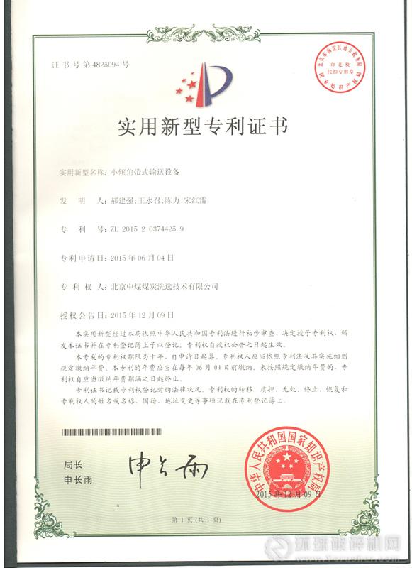 北京中煤“小傾角帶式輸送設(shè)備”新型專利獲國家知識產(chǎn)權(quán)局授權(quán)
