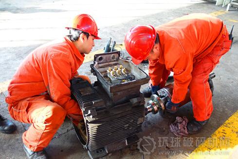 圖為該車間技術(shù)能手正在實(shí)地拆裝電機(jī)