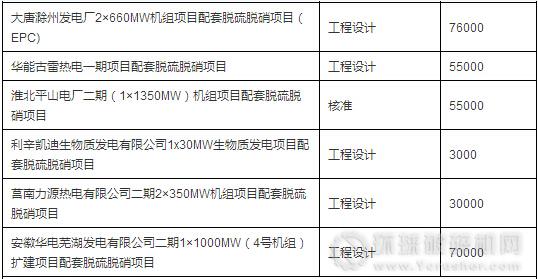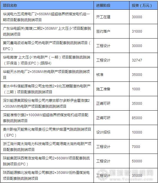 2016年2月近一個月國內(nèi)擬建和在建的脫硫脫硝項目(部分)