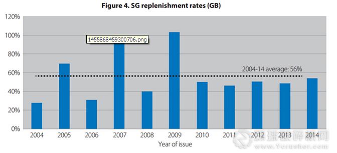 根據(jù)該報告,與同年砂石銷量相比,新審批的砂石礦儲量總體偏小。報告中使用替代率來表示新審批儲量與當年砂石銷量的比例,如下: