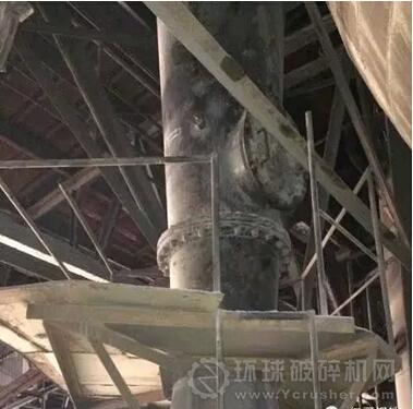 環(huán)球破碎機網訊 3月26日上午,動力工段轉爐風機組,在轉爐塔樓3套一次除塵例行檢查中,發(fā)現2#轉爐一次除塵系統重坨部位異響,觸摸有晃動感,細查發(fā)現3顆重坨固定螺栓有一顆松動,管壁固定螺紋已磨平,螺桿隨內部重坨吊管搖擺而移動,聲響由于重坨撞擊管壁而發(fā)出。