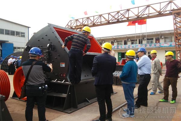 用戶近距離考察破碎設(shè)備的內(nèi)部結(jié)構(gòu),鼎力工作人員并對(duì)設(shè)備結(jié)構(gòu)以及性能的介紹。