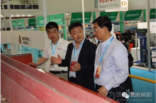 5月23日,中國工程院院士孫傳堯和中國冶金礦山企業(yè)協(xié)會常務副會長雷平喜出席“第二屆中外礦山技術(shù)裝備發(fā)展論壇”,在論壇間歇期間,孫傳堯院士、雷平喜會長等業(yè)內(nèi)領導到陸凱公司展區(qū)參觀指導,陸凱公司總經(jīng)理李松奕、市場部部長趙振龍等陪同參觀介紹,孫院士聽取了陸凱與MBE礦物加工技術(shù)有限公司(原德國洪堡威達克)簽署的戰(zhàn)略合作協(xié)議,從德國引進先進的高壓輥磨機和浮選機技術(shù),認真詢問了陸凱公司近幾年的發(fā)展狀況,并對陸凱公司的大型直線振動篩和干霧抑塵設備給予了認可和贊揚!