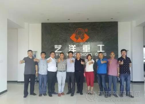 2016年5月31日,都江堰2016年礦山設(shè)備群技術(shù)交流會(huì)期間,受成都市藝洋機(jī)械有限公司劉總邀請(qǐng),環(huán)球破碎機(jī)網(wǎng)及彭州市誠(chéng)鑫機(jī)械有限公司徐總、杭州海興機(jī)械朱董和王總、金峰機(jī)械李總、眾建礦機(jī)夏總、新一代礦機(jī)朱董、青島環(huán)球雙馬輸送帶龍?jiān)啤⒑贾萁鸱鍣C(jī)械滕航環(huán)保陳經(jīng)理等人前入藝洋重工公司參觀交流。