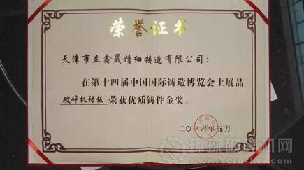 襯板--作為立鑫晟企業(yè)的優(yōu)質(zhì)產(chǎn)品,榮獲了優(yōu)質(zhì)鑄件金獎的殊榮。這是立鑫晟自2010年參加中國鑄造協(xié)會組織的系列展覽會以來,連續(xù)第五次獲得金獎。