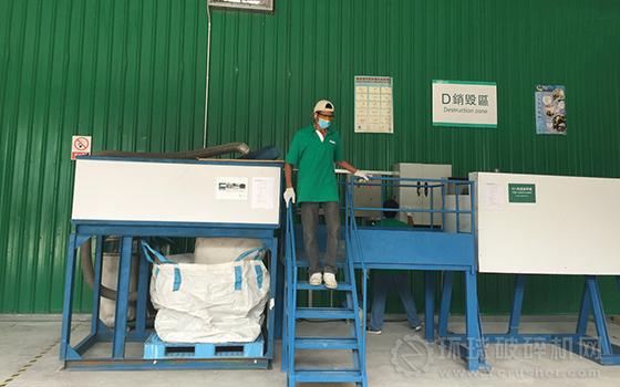 在香港新界粉嶺一間4000平米的廠房里,回收的舊手機在進入廠房時先要在卸貨區(qū)進行驗收,接著每一部手機都會被放在拆解平臺上拆解并打孔,在這之后手機的鍵盤、后殼、前面板等會分別放入不同的框內以供下一步操作。