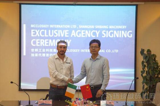2016年9月10日,世邦工業(yè)科技集團股份有限公司(SBM)與愛爾蘭著名履帶破碎篩分站制造商MCCLOSKEY完成獨家代理簽約儀式,Mccloskey 授權(quán)SBM 代理銷售其全系列履帶破碎篩分設備,并初步劃定中國及中國客戶在海外的投資地為合作區(qū)域。