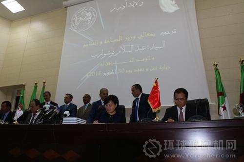此次簽約的前一天,由中國建材工程總承包的STG水泥生產(chǎn)線一線項目舉行了回轉(zhuǎn)窯吊裝啟動儀式。阿爾及利亞工業(yè)部部長、阿德拉爾省省長、阿爾及利亞國民議會副議長及阿德拉爾省政府官員、軍區(qū)代表及媒體記者等百余人組成的政府代表團出席儀式。參觀結(jié)束后,代表團前往中國建材U-house新型節(jié)能裝配式房屋展示區(qū)參觀并座談。阿方對中國建材工程全體項目建設(shè)人員在惡劣的自然環(huán)境下,短時間內(nèi)取得的進展表示贊嘆。