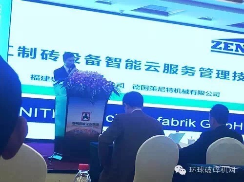 福建泉工股份副總經(jīng)理洪新波作《建筑垃圾再生混凝土砌塊設(shè)備》報告,重點圍繞制磚設(shè)備智能云服務(wù)管理技術(shù)講說