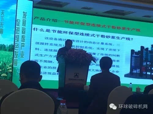 江蘇晨日環(huán)??偨?jīng)理徐祥來作《節(jié)能環(huán)保型連續(xù)式干粉砂漿生產(chǎn)線》報告,介紹企業(yè)簡介、產(chǎn)品介紹及設(shè)備優(yōu)點